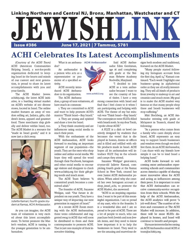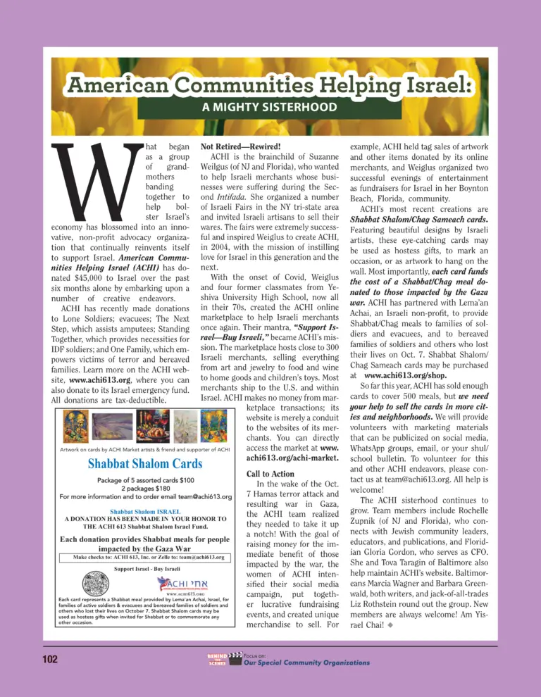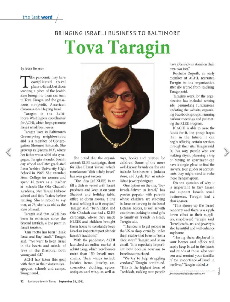 Tova Taragin’s of Baltimore is active in ACHI, American Communities Helping Israel