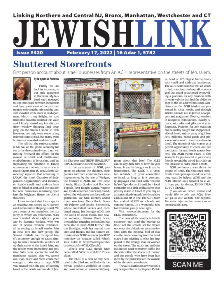 The brand-new ACHI Market (achi613.org) is an online marketplace where 70+ Israel-based vendors can find new customers worldwide.